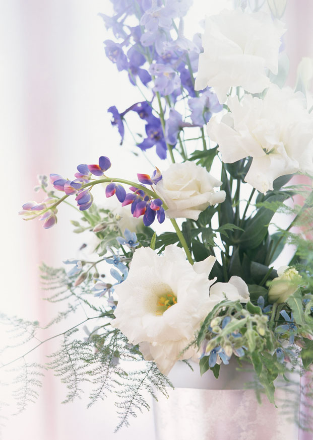 『デルフィニウム』の花言葉は「清明」「慈悲」など。人々を慈しみ、楽しみを与え、苦しみを取り除いてほしいものです。