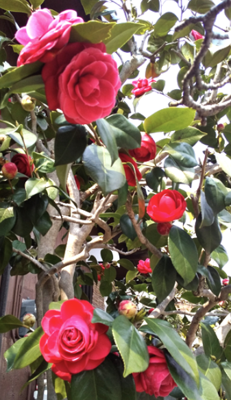 部屋の窓越しに、赤いつばきの花が透けて見えて、とても風情のある季節となりました! ”小さな幸せ” を感じます♪