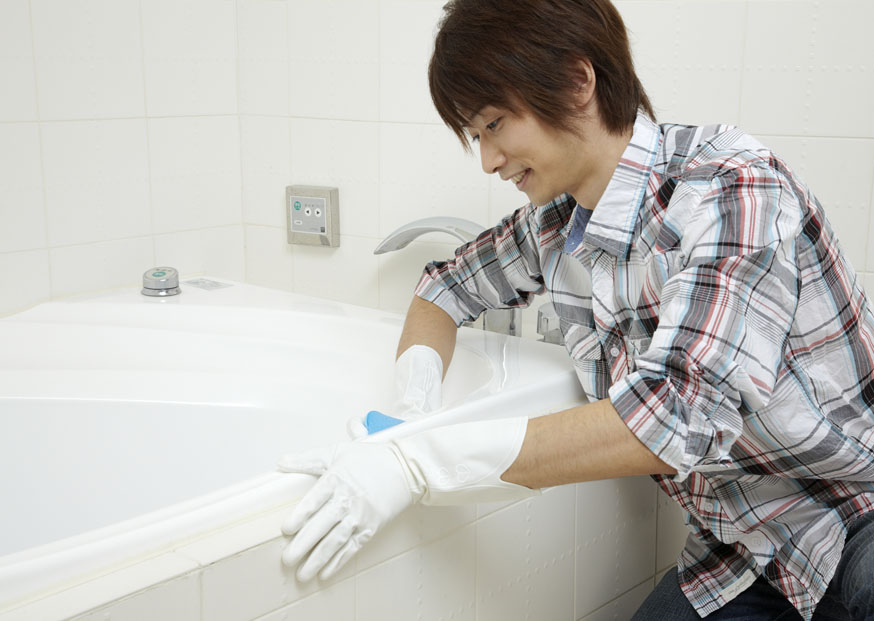 その数日前から、浴室、洗面台、洗濯パン、キッチンと作業をしやすいように、ていねいな清掃を始めます。それでも、浴室など直前で使用する人もいるので、作業前に最終確認をしておきます、、。