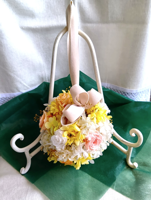 ボールはボールでも『フラワーボール♪』… 円形の土台(スポンジ)にお花を挿して行くとでき上がります! ”いかに丸く作るか” がポイント◎